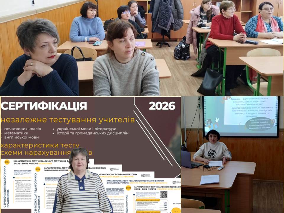 Антоніна Степанюк, консультант КУ «ЦПРПП», проінформувала педагогів про особливості сертифікації вчителів у 2026 році, звернула увагу на основні вимоги, етапи проходження сертифікації та надала практичні рекомендації щодо підготовки.