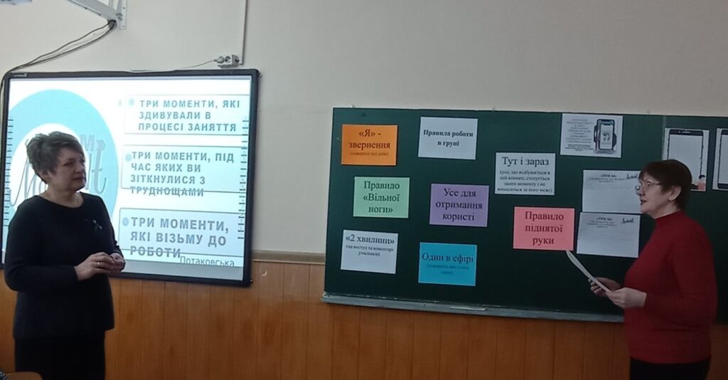 У ході засідання педагоги поділилися власними ефективними освітніми практиками. Так, Олена Висоцька, учитель Славутської гімназії №1, розкрила тему «Криза як можливість», зосередивши увагу на перетворенні навчальних прогалин на точки зростання через розвиток метакогнітивних навичок учнів.