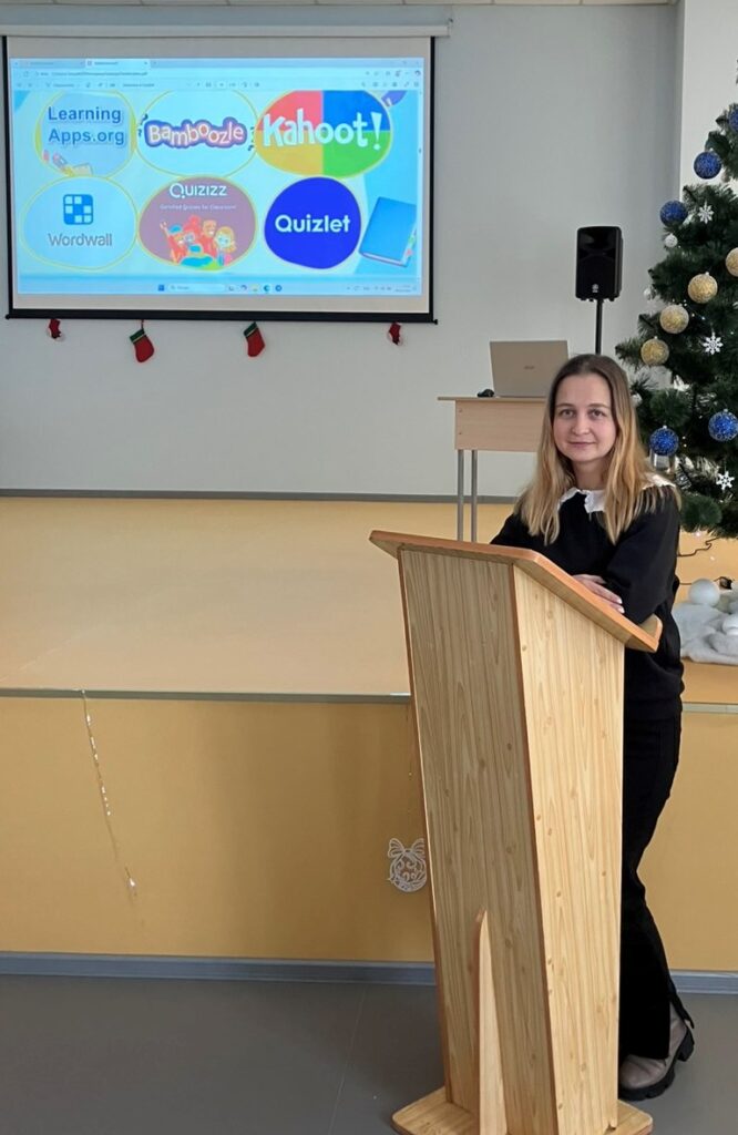 У рамках засідання вчителі презентували власні напрацювання та практичні кейси. Тетяна Рабчун, учитель англійської мови та літератури Славутського ліцею, виступила з темою «Інтеграція ШІ в компетентнісні CLIL-уроки англійської мови: практичні рішення для сучасного навчання», акцентувавши увагу на можливостях штучного інтелекту для формування ключових компетентностей учнів. Наталія Павельчук, учитель англійської мови Славутської гімназії №7, поділилася досвідом використання цифрових технологій на уроках англійської мови, продемонструвавши ефективні онлайн-інструменти та платформи для активізації навчальної діяльності. Сищук Марія, учитель Славутської гімназії №1, розкрила поняття гейміфікації та презентувала приклади використання ігрових елементів у процесі навчання для підвищення мотивації учнів.