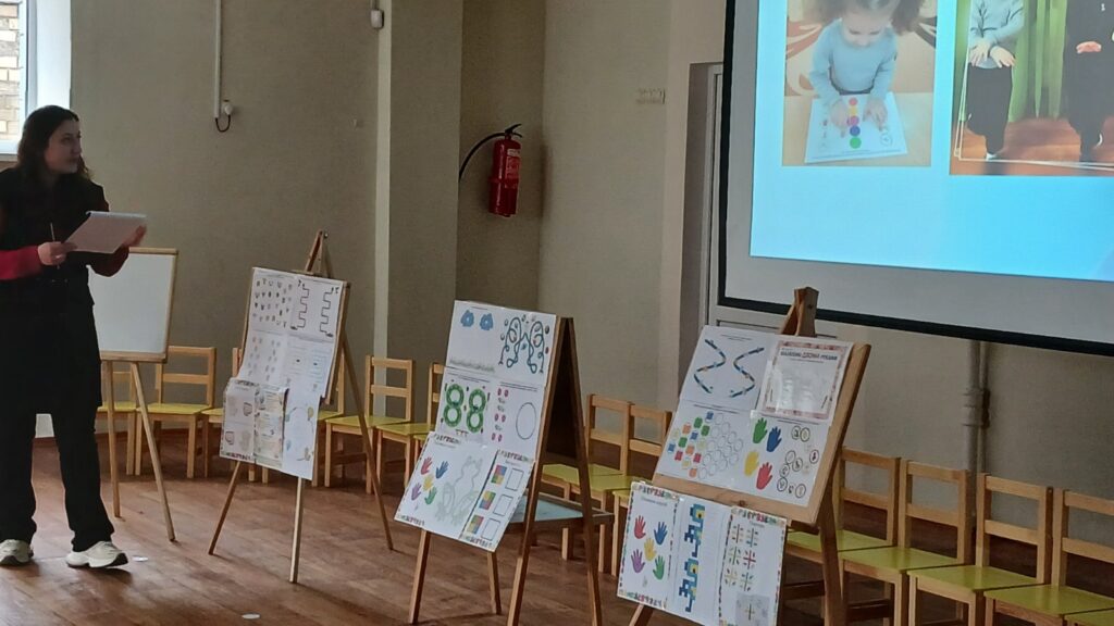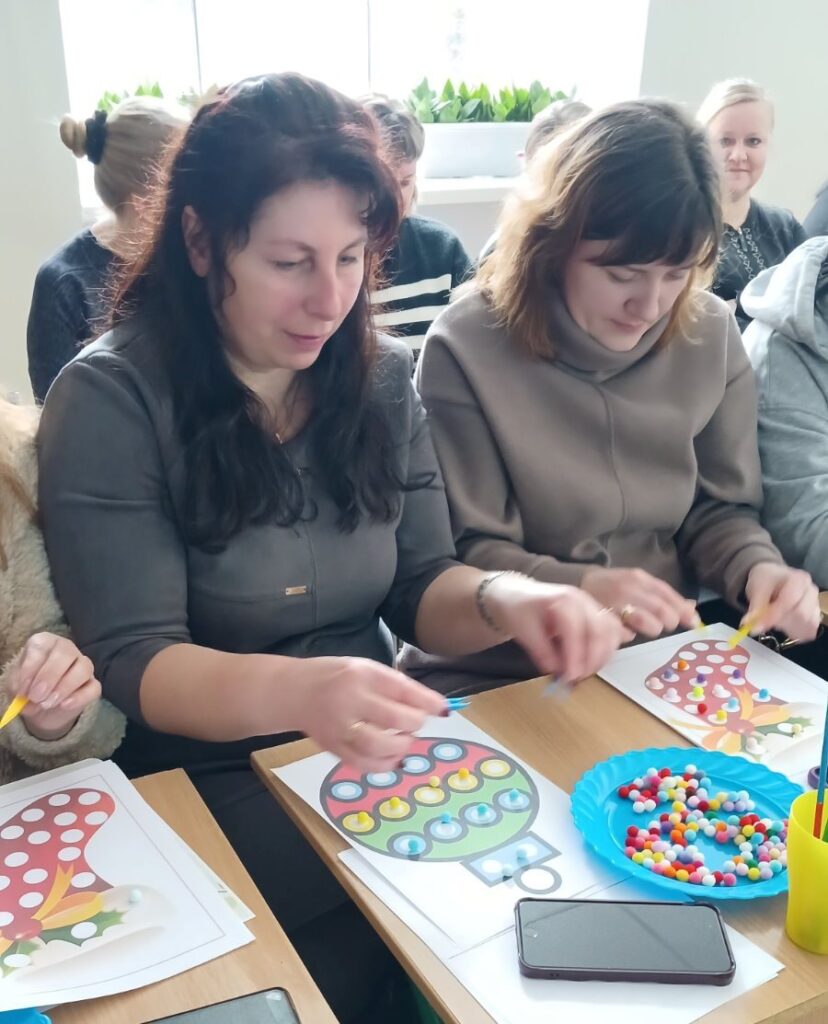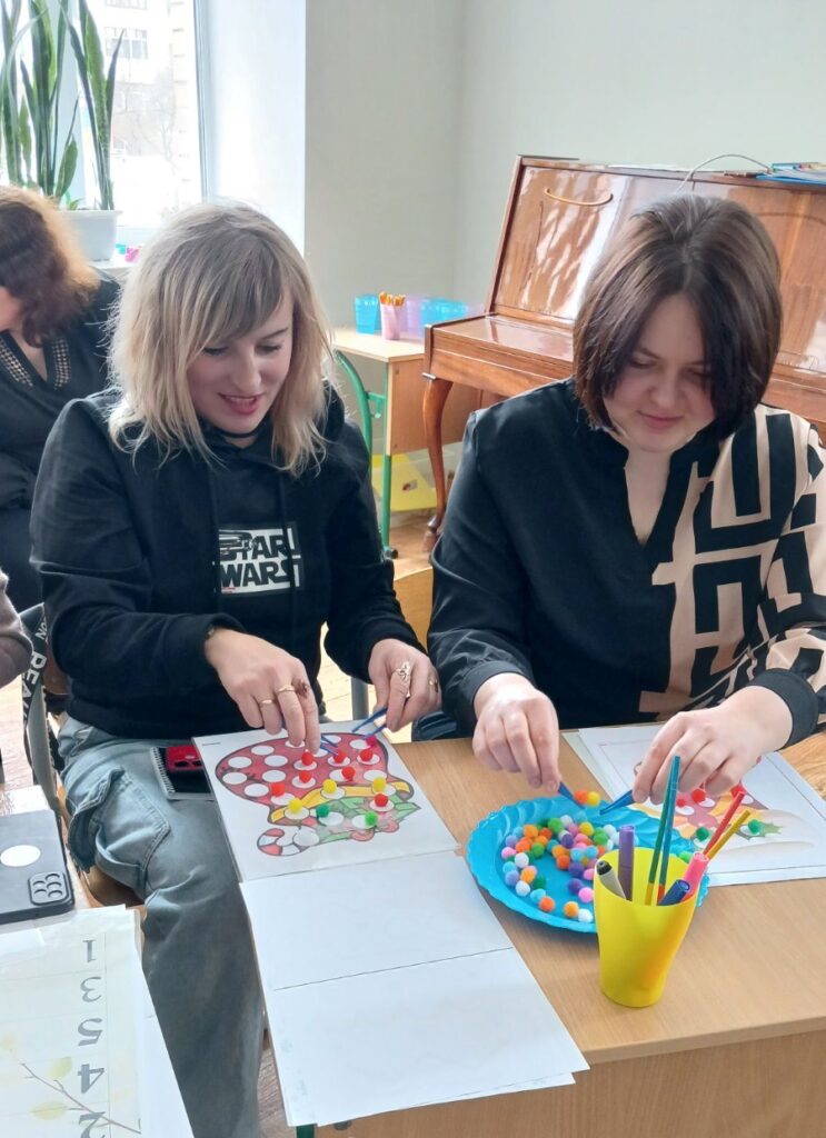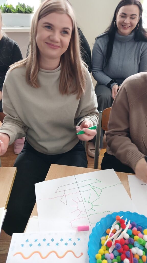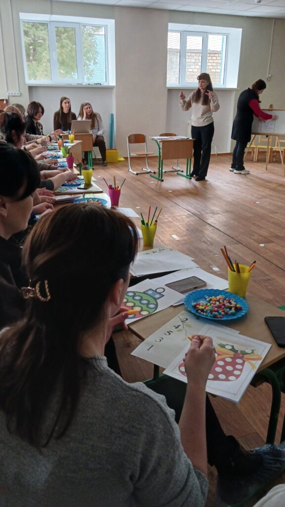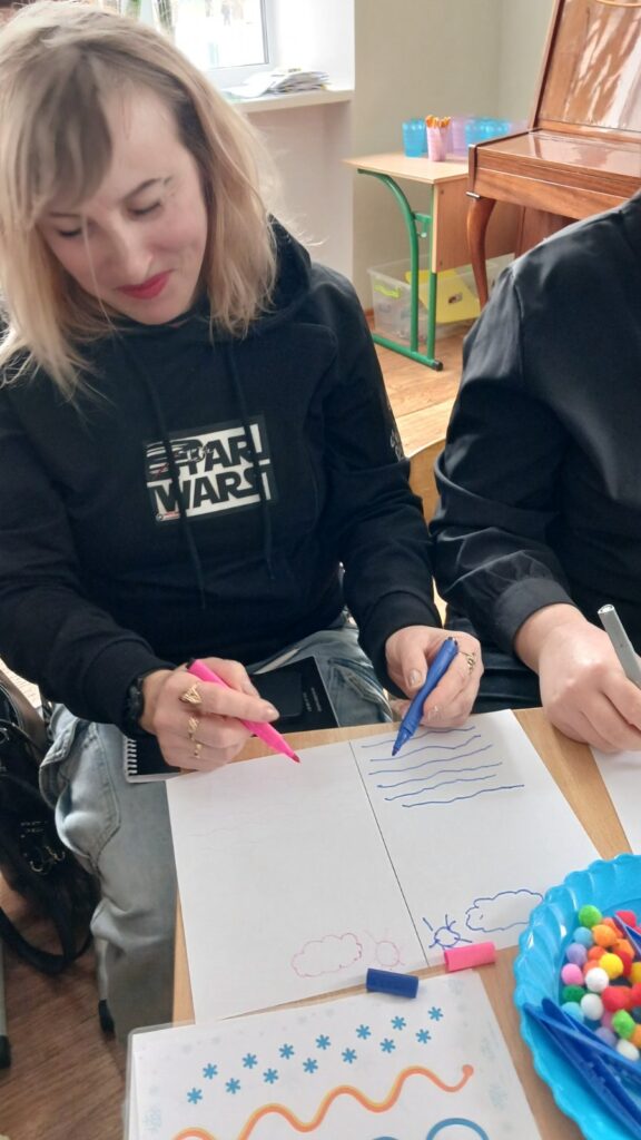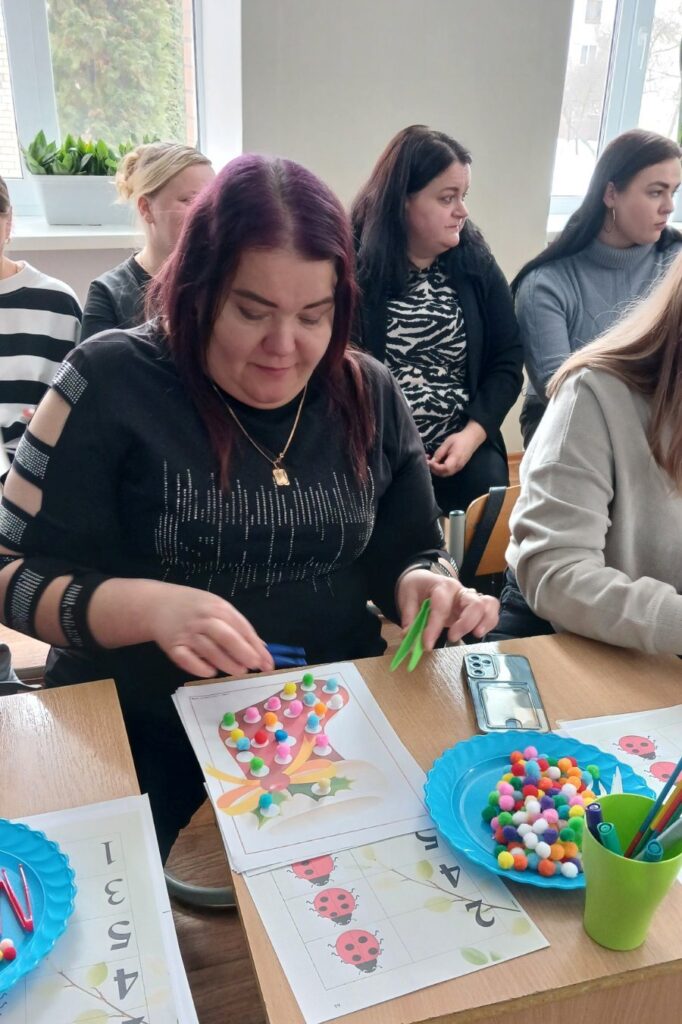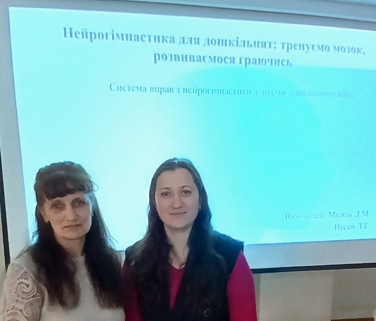 Леся Місяць і Любов Несен залучили колег до практичного заняття з нейрогімнастики, спрямованого на розвиток уваги, пам’яті, координації рухів та міжпівкульної взаємодії. Учасники ознайомилися з ефективними вправами й іграми, які легко інтегрувати в щоденну роботу з дітьми для покращення їхнього когнітивного й емоційного розвитку.