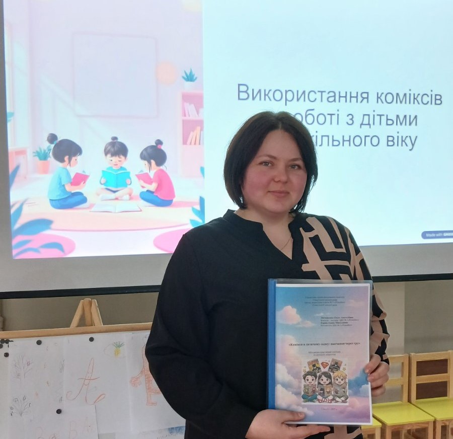 Ольга Литвиненко та Олена Карюк презентували можливості використання коміксів у роботі з дошкільниками як дієвого засобу розвитку мовлення, уяви та емоційного інтелекту. Завдяки яскравим ілюстраціям і послідовності подій діти краще розуміють зміст, навчаються встановлювати логічні зв’язки та створювати власні історії. Обговорення персонажів і їхніх вчинків сприяє формуванню навичок спілкування, емпатії та критичного мислення. Особливо цінним є створення коміксів самими дітьми, що посилює інтерес до читання й творчості.